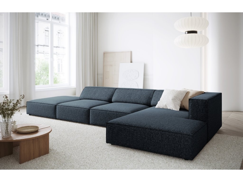 Királykék kárpitozott sarokkanapé Cosmopolitan Design Arendal 341 cm, jobb