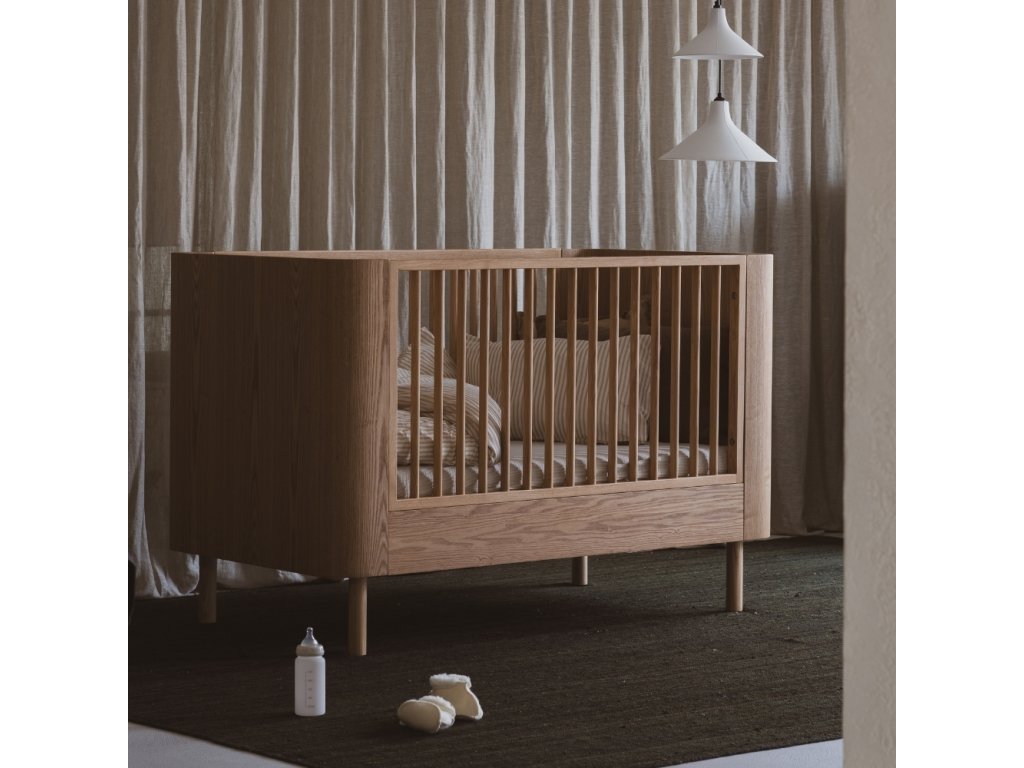 A Quax Yume bútorkollekció időtlen dizájnt mutat be, finom ívekkel , valamint esztétikusés praktikus funkciókkal is büszkélkedhet.. A minimalista kialakítású kiságy kőrisfurnérból készült, amelyet masszív alap és kőrisfából készült oldalsó korlátok egészítenek ki. Ha a baba felnő, csak szerelje le az oldalsó korlátokat, és máris kész a gyermekágy. Az ágyból való kiesés elkerülése érdekében javasoljuk, hogy vásároljon sorompót Quax Yume . Tökéletesítse a belső teret ebből a kollekcióból vagy kedvenc kollekciójából más darabokkal Hai-No-Ki , amelyek nemcsak az azonos felület miatt passzolnak egymáshoz.