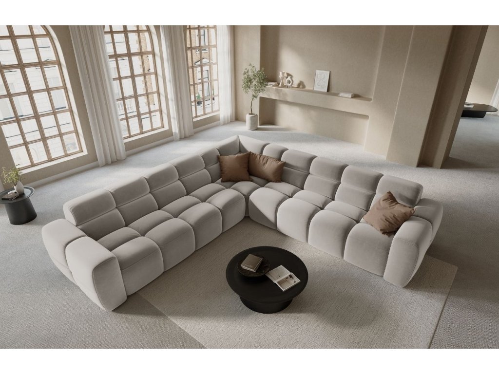 A Lisa sarokülőgarnitúra öt személy számára elbűvöli Önt modern dizájnjával és ellenállhatatlan kényelmével. Az elegáns sziluett, a mély ülések és a puha háttámlák tökéletes helyet teremtenek a pihenéshez, akár egy filmes estét élvez, akár a családjával tölti az időt. A minőségi habszivacs töltet és a zsákrugók révén a kanapé maximális kényelmet és kiváló testtartást biztosít. Az exkluzív kárpitozás Casino nemcsak luxus megjelenést, hanem praktikumot is kölcsönöz a kanapénak. Ez a bársonyosan puha anyag finom fényével nemesen hat, ugyanakkor rendkívül kellemes tapintású. A szövetet a magas kopásállóság és a karcolásokkal szembeni ellenállás jellemzi, amit a háziállat-tulajdonosok is értékelni fognak. A lassított folyadékfelszívódás és a könnyű karbantartás ráadásul biztosítja, hogy a kanapé hosszú évekig megőrizze megjelenését. A Lisa kanapé széles színválasztékban kapható, és a kollekció további modelljeivel is kombinálható, így könnyen harmonikus belső teret hozhat létre.