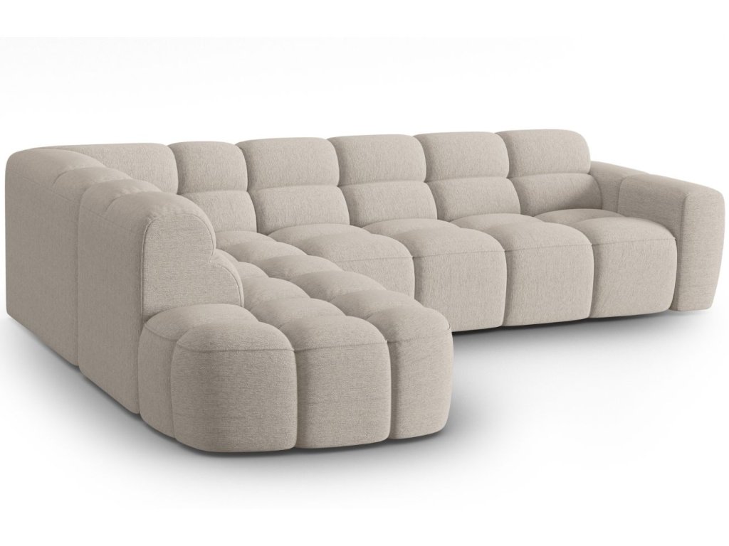 A Lisa sarokülőgarnitúra öt személy számára elbűvöli Önt modern dizájnjával és ellenállhatatlan kényelmével. Az elegáns sziluett, a mély ülések és a puha háttámlák tökéletes helyet teremtenek a pihenéshez, akár egy filmes estét élvez, akár a családjával tölti az időt. A minőségi habszivacs töltet és a zsákrugók révén a kanapé maximális kényelmet és kiváló testtartást biztosít. Az exkluzív Sorella kárpitozás egyedi karaktert kölcsönöz az ülőgarnitúrának finom tweed kötésével. Az anyag ötvözi a retro eleganciát a modern hangulattal, enyhén fényes felülete pedig melírozott színezésével kifinomult megjelenést kölcsönöz a kanapénak. Az esztétikai érték mellett rendkívül praktikus, kiemelkedik a kopásállóság és a könnyű karbantartás. A Lisa kanapé széles színválasztékban kapható, és a kollekció további modelljeivel is kombinálható, így könnyen harmonikus belső teret hozhat létre.