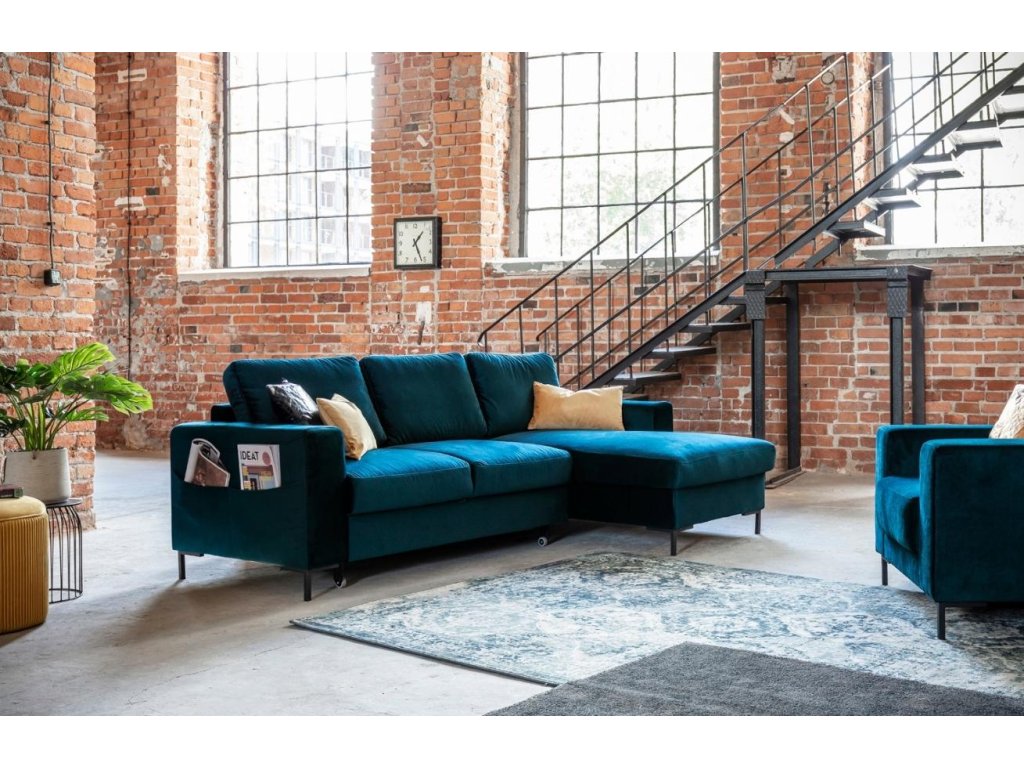 A Lofty Lilly sarokülőgarnitúra a Miuform márkától egyesíti az ágy és a kanapé funkcionalitását egy gyönyörű designban. A Lofty Lilly a két világ legjobbjait ötvözi anélkül, hogy a megjelenés vagy a minőség rovására menne. A gyönyörű, petrolkék bársony kárpitozás és az elegáns, sima vonalak remek kiegészítői a modern otthonnak. Ez a kivételes bútordarab úgy készült, hogy megfeleljen az Ön igényeinek, és ne csak kényelmes ülést biztosítson, hanem vendégeit is elszállásolja egy további fekvőfelülettel a könnyű ággyá alakítás révén. Válassza ki Ön is a megfelelőt a Lofty Lilly termékcsaládból.