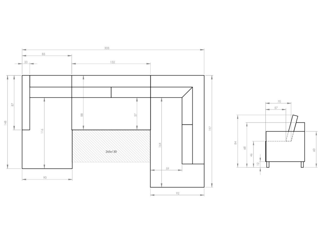 Lofty Lilly bársony kihúzható kanapé 303 cm, jobb oldali