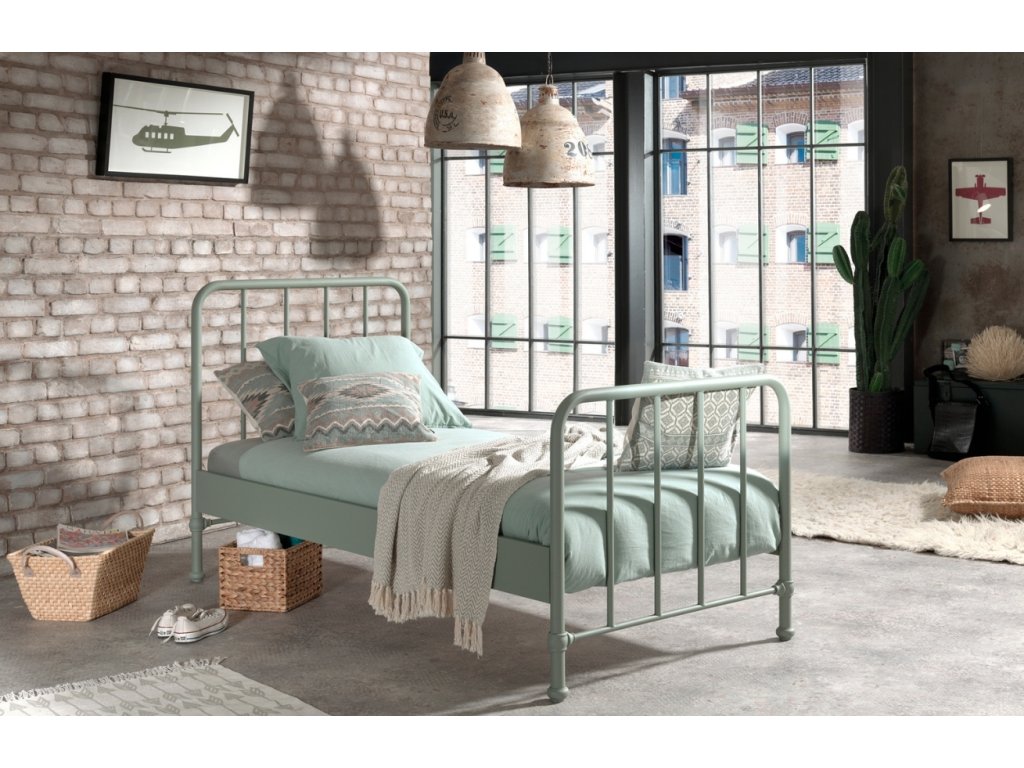 Matt zöld fémágy Vipack Bronxx 90 x 200 cm