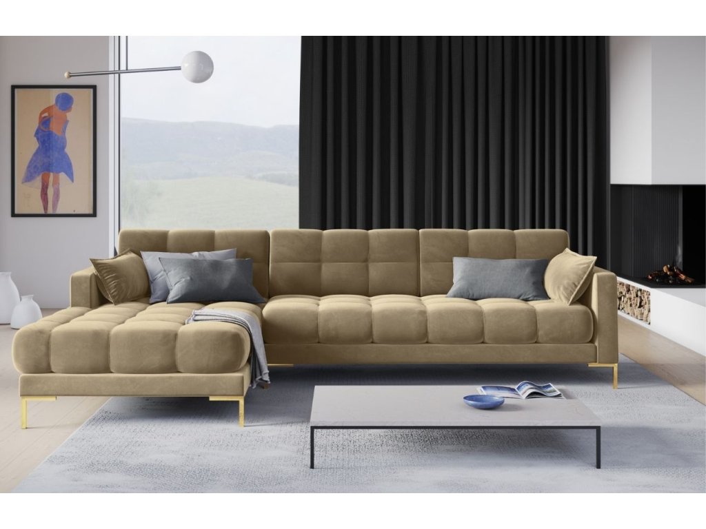 MICADONI MAMAIA bézs bársony sarokkanapé 293 cm, arany alappal, bal