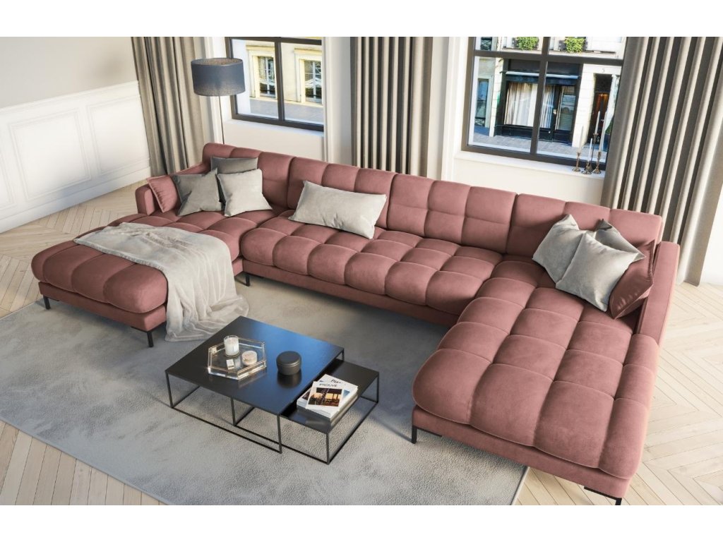 MICADONI MAMAIA rózsaszín bársony hatszemélyes U alakú sarokkanapé 383 cm fekete talppal