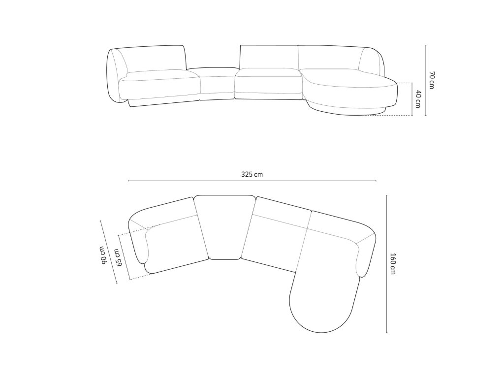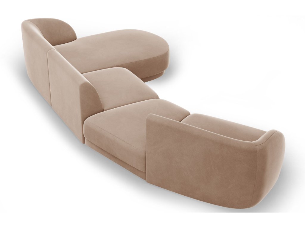 A Micadoni márkájú Miley ötszemélyes sarokkanapét imádni fogja! Elegáns, ívelt háttámlája szó szerint pihenésre csábít, míg a finoman süllyesztett alap légies és könnyed megjelenést kölcsönöz az egész darabnak. A puha, tartós és ránézésre is kellemes bársony vonzó megjelenést kölcsönöz a bútornak, amely ragyogást és kifinomultságot visz a helyiségbe. A kanapé ideális választás modern vagy skandináv stílusú belső terekbe. A kanapé a Miley kollekció más termékeivel együtt kapható. Ez lehetővé teszi, hogy olyan ülőgarnitúrát hozzon létre, amely üveg- vagy fa dohányzóasztallal kombinálható.