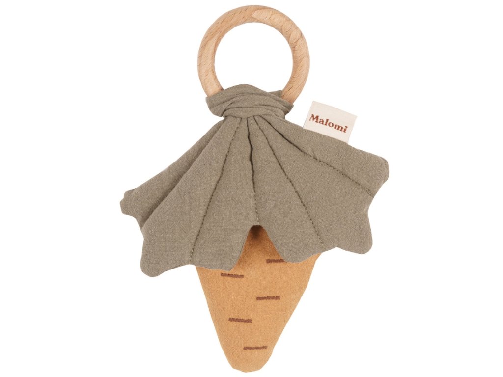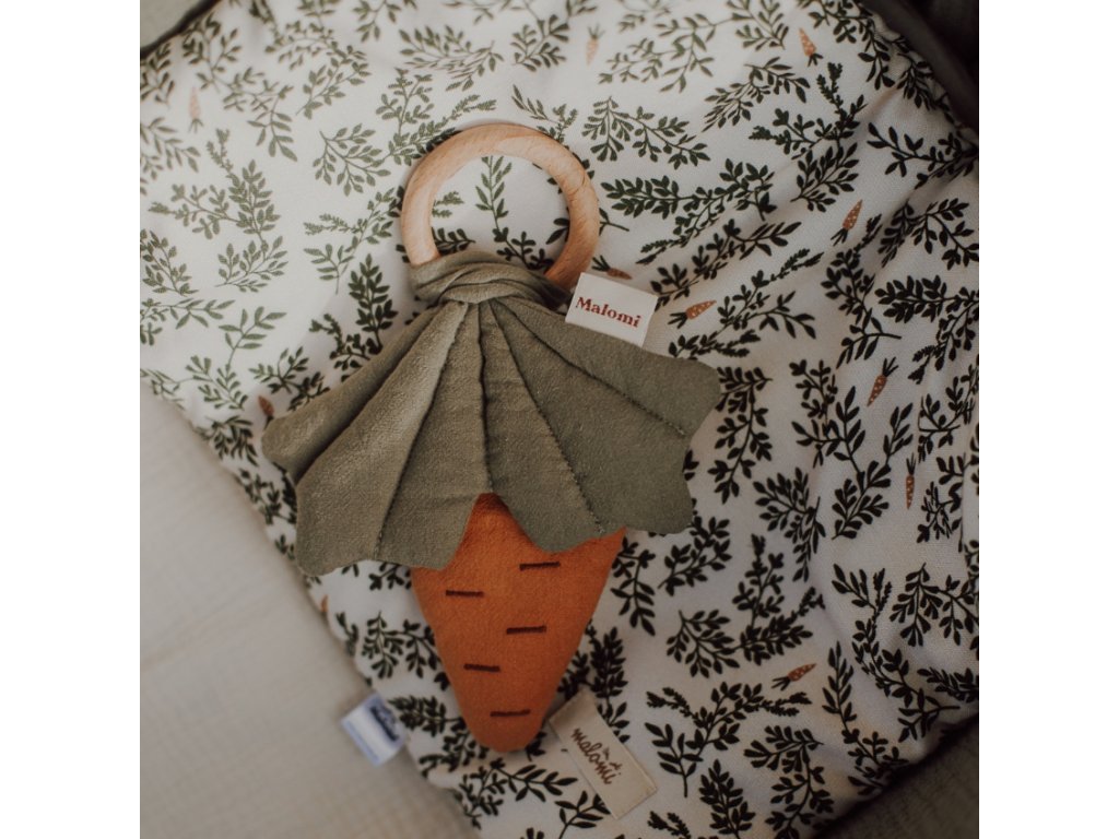 A Malomi Kids Carrot rágókával ellátott csörgő ideális játék, amikor a babáknak nőni kezdenek a fogaik. A sárgarépa formájú szövet csörgő finom pamutból készült, és nagyszerű segítség lesz a baba motoros készségeinek fejlesztésében. Fából készült rágókához van rögzítve, amely bükkfából készült, és nincs lakkozva vagy impregnálva. A játék nagyszerű lesz fogzáskor, és egyben leköti az angyalkád figyelmét.