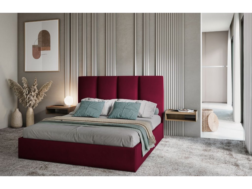 Piros bársony franciaágy MICADONI Pyla 140 x 200 cm tárolóhellyel