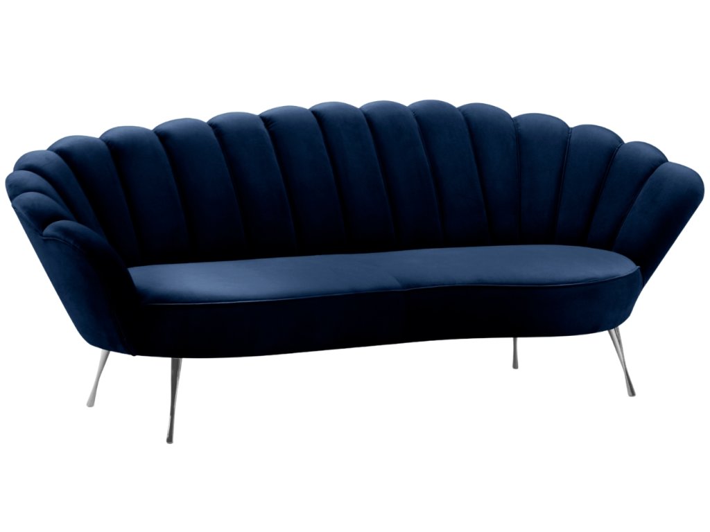 Royal Blue Velvet háromüléses kanapé Cosmopolitan Design Kingston 224 cm ezüst alappal