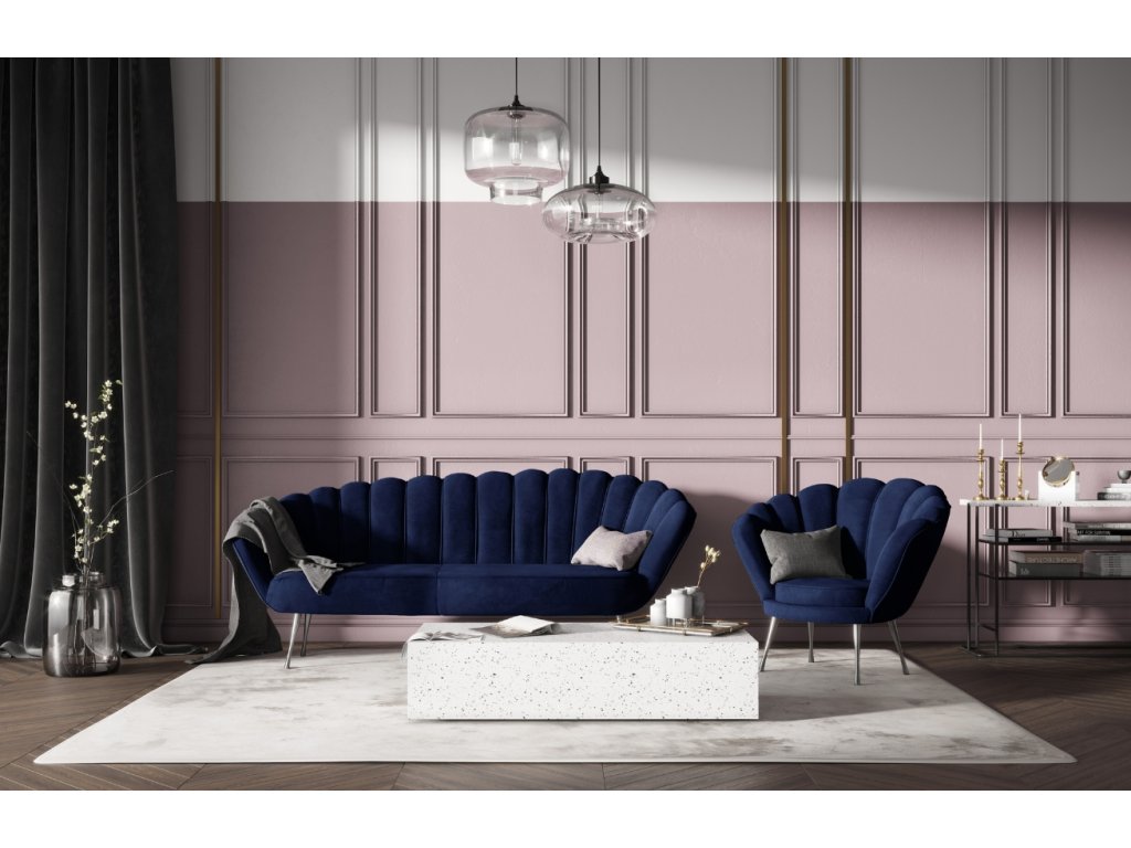 AKingston háromüléses kanapét a Cosmopolitan Design márkától a finom varrásjellemzi, amely elegáns és légies megjelenést kölcsönöz neki. Királykék színű, fényes bársony kárpitozása puha és kellemes tapintású. A szövet rendkívül ellenálló a kopással és a folyadékfelszívódással szemben, így hosszú távú használatot garantál kopás jelei nélkül. A kanapé általános kialakítását ezüstszínű fém talapzat egészíti ki. A tökéletesen illeszkedő ülőfelület érdekében javasoljuk, hogy a kanapét egészítse ki egy ugyanabból a sorozatból származó karosszékkel. Minden termék hét színben kapható. Élvezze a kényelmet és a stílust egyben!