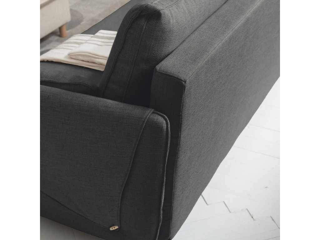 A Simon kihúzható kanapé a Miuform márkától ideális megoldást kínál kisebb lakásokba. A kanapé kellemes anyaggal van kárpitozva, melyet oldalról fa gombok díszítenek. A kanapé érdekességei a keskeny kartámaszok és a magasabb fa lábazat, melyeknek köszönhetően könnyed és légies hatást kelt. A kényelmes ülőfelület könnyen szétnyitható két matracra, és máris 140 x 190 cm-es fekvőfelületet kapunk. A kanapé egy praktikus tárolóhelyet is kínál, ahol kényelmesen elférnek a párnák és a takarók.
