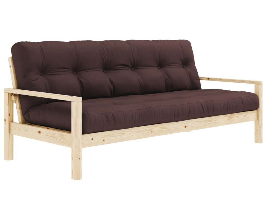 Kanapé vagy ágy? A dán Karup Design háromüléses Knob kinyitható kanapé mindkettő } ! A fából készült karfák alatt két, nem feltűnő fogantyú található, amelyek könnyen lecsavarhatók, így pillanatok alatt kényelmes ágyat biztosíthat magának vagy vendégeinek. Az FSC tanúsítvánnyal rendelkező tömör fenyőfa szerkezetet kiváló minőségű, 14 cm-es futonmatrac egészíti ki , amely újrahasznosított szálakat és 4 cm habot kombinál. A Knob kanapé fantasztikusan illeszkedik a skandináv és japán lakberendezési stílusokhoz, egyszerűséget, eleganciát és tiszta funkcionalitást biztosítva. Ez egy nagyszerű megoldás, különösen a kisebb terek számára, ahol további alvóhelyet biztosít. Vybrat si ji můžete v další barvě konstrukce či v mnoha barvách matrací.