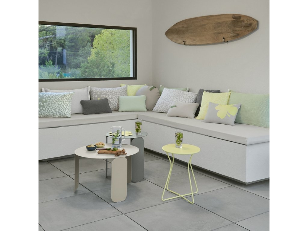 Ez az oldalasztal a kiterjedt Bebopkollekcióból származik, amelyet a Fermob tervezői terveztek, így az egyes asztalok könnyen kombinálhatók egymással. Prémium minőségű anyagokból készült, és azeurópai szabványok (NF EN 581-1 és NF EN 581-2) minőségi követelményeinek megfelelően tesztelték . A kültéri használatra szánt exkluzív korróziógátló kezelési rendszernek és az UV-védelemmel ellátott porfestéknek köszönhetően (szabványosított AFNOR tesztek) az asztal praktikus és tartós társ a kertben, a teraszon, de beltéren is, ahol (nem csak) a téli hónapokban tölthet be praktikus funkciót.