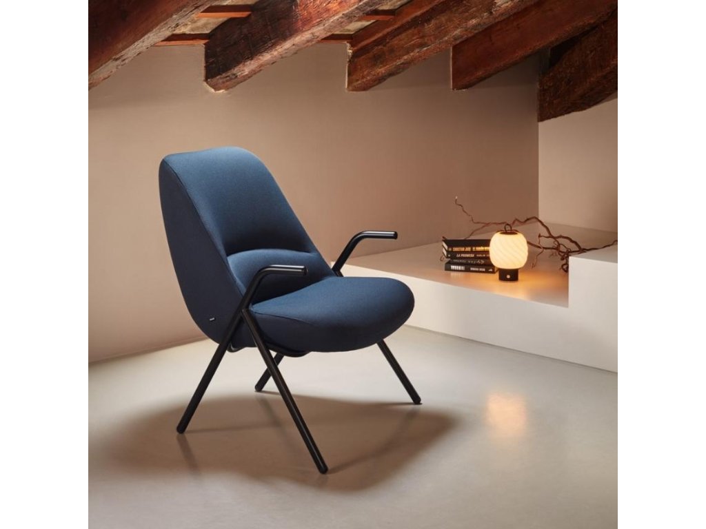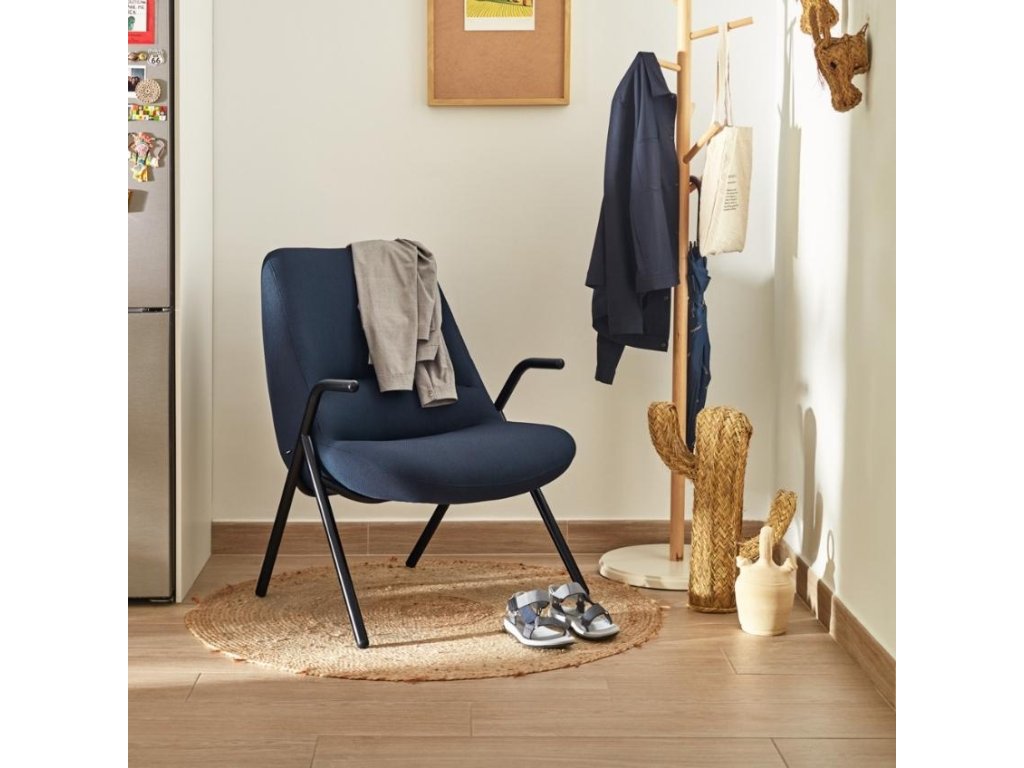 A dizájnos fotel Teulat Dins lenyűgözi a szövetkárpit, finom varrások és a könnyű feketére lakkozott fémszerkezet kombinációját. Egyedi megjelenésének és stílusos árnyalatának köszönhetően tökéletesen megállja a helyét bármilyen belső térben. A puha ülőfelület maximális kényelmet biztosít a tévénézés vagy egy könyvvel töltött este közben. A szék tűzállósági tanúsítvánnyal rendelkezik, ami alkalmassá teszi kereskedelmi helyiségekbe, például irodákba, szállodai előterekbe stb.