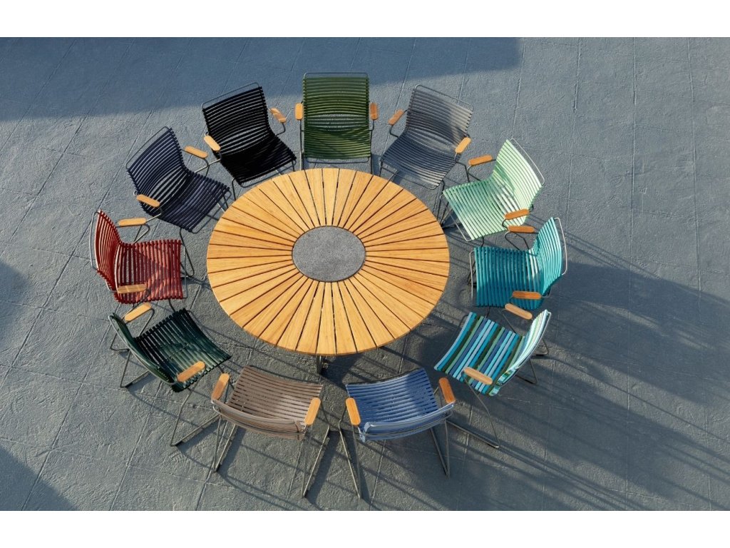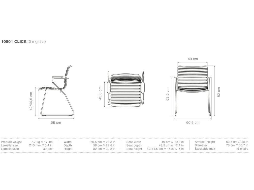 A HOUE Click kerti szék modern megjelenésével nyűgöz le. A Click szék a modern északi stílust hangsúlyozza, ami már első pillantásra magával ragadóvá teszi. A műanyag lécekből készült kényelmes ülés, a fém alap és a praktikus bambusz kartámaszok együttesen egy egyedi bútordarabot alkotnak, amely tetszeni fog Önnek. A modern design és a markáns kifejezésmód kiemeli a szék általános lényegét. A szék alkalmas kültéri környezetbe.