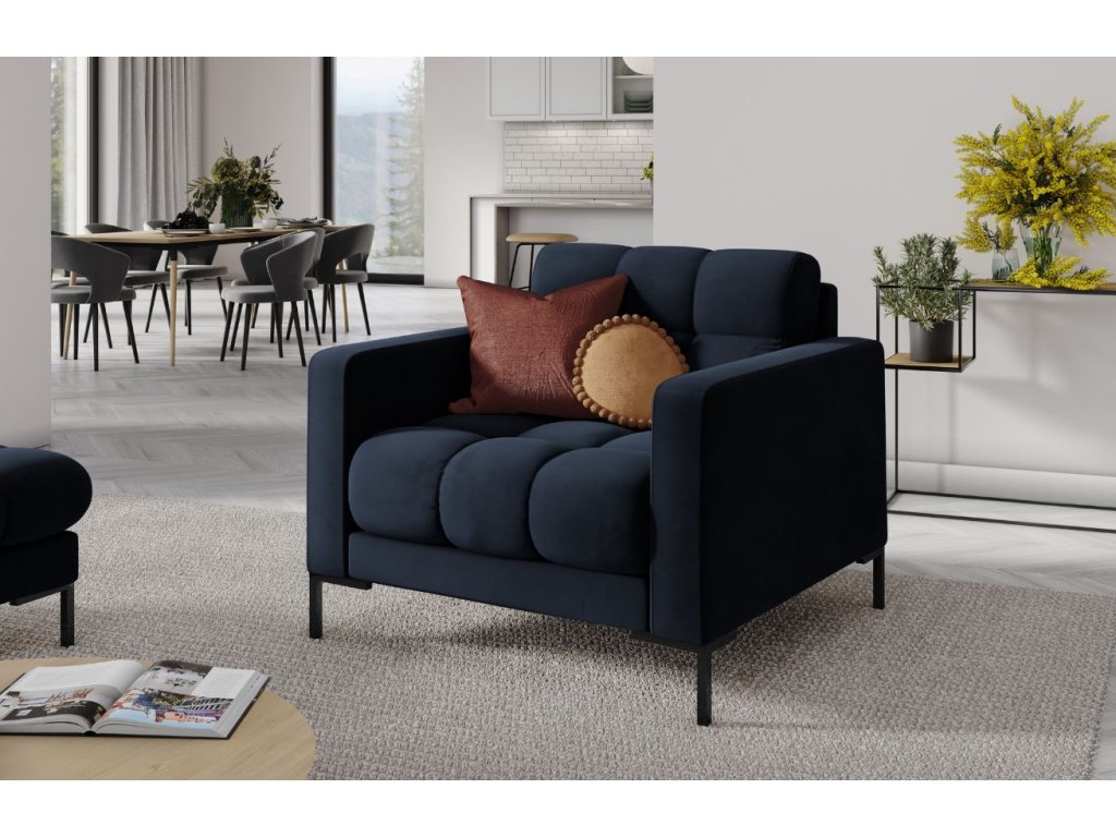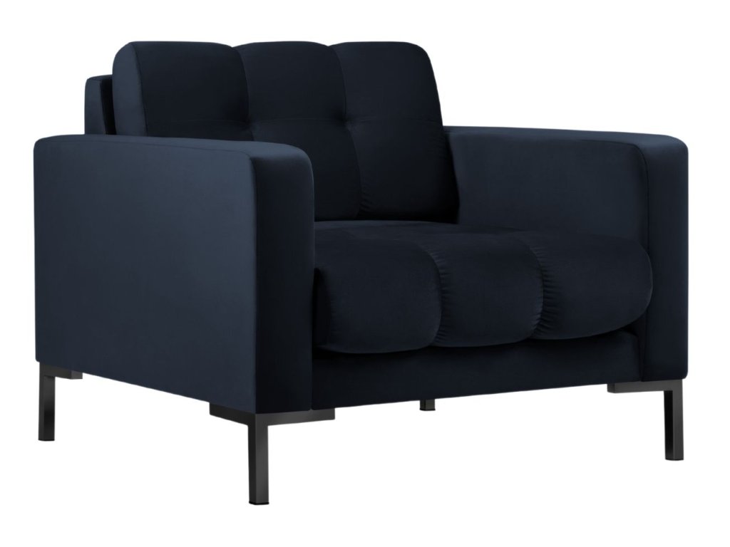 Sötétkék MICADONI Mamaia bársony fotel fekete talppal