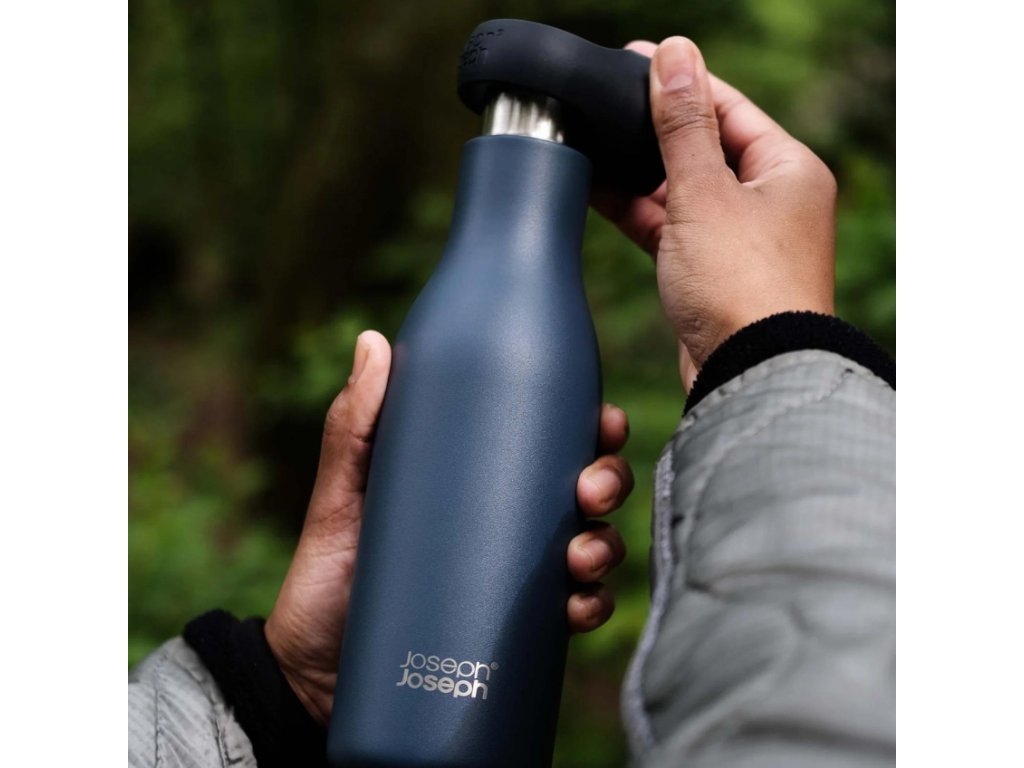 A stílusos Loop termoszüveggel a Joseph Joseph -tól, a hidratáltság megőrzése minden utazás során gyerekjáték. A vákuumszigetelt palack rozsdamentes acélból készült , réz bevonattal és duplafalú szerkezettel büszkélkedhet, amely 12 órán át tartja melegen és 24 órán át hidegen az italokat. A palack kupakja kerek fogantyúval van ellátva a kényelmes hordozás érdekében, és miután kinyitották, a fogantyú a könnyű tárolás érdekében szépen ráilleszthető a palack nyakára. Annak érdekében, hogy az ital kívánt hőmérsékletét minél hosszabb ideig megőrizze, javasoljuk, hogy a töltés előtt meleg vízzel előmelegítse, vagy hideg vízzel hűtse le.