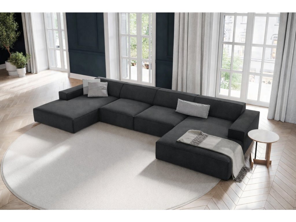 Sötétszürke "U" szövet sarokkanapé MICADONI Jodie 364 cm