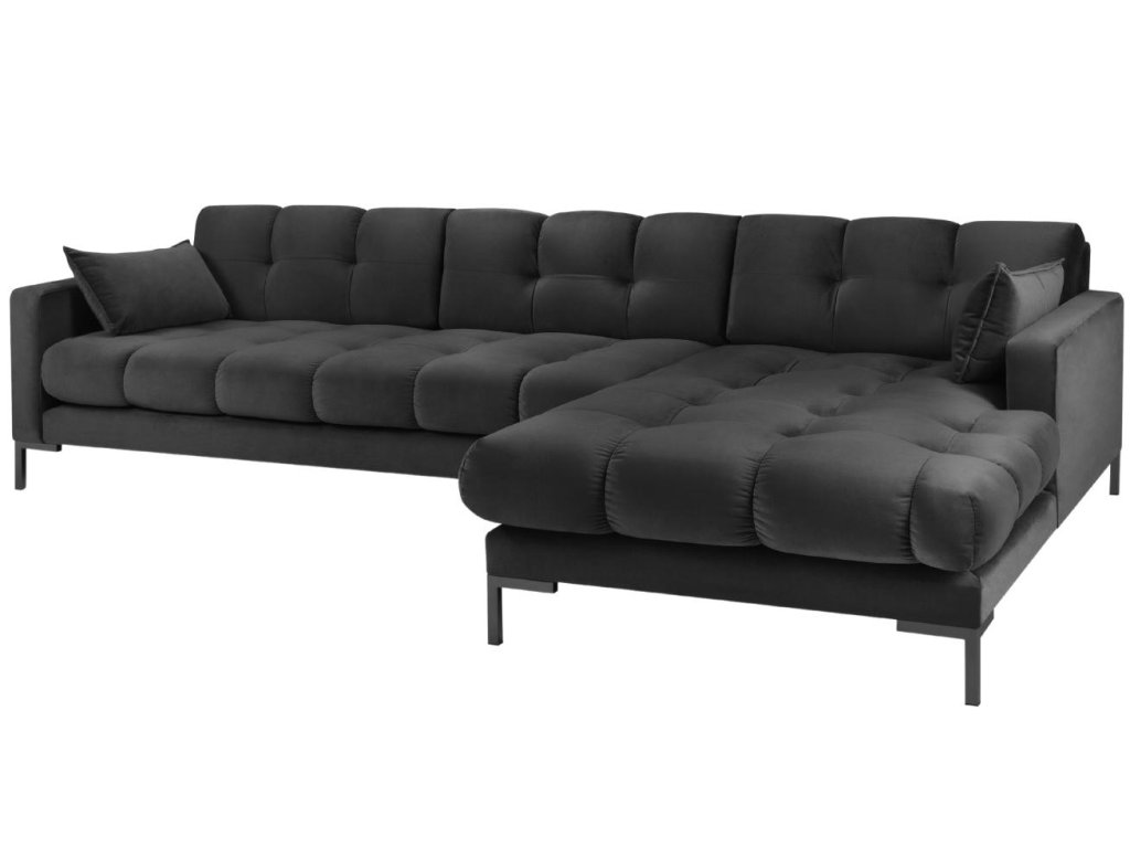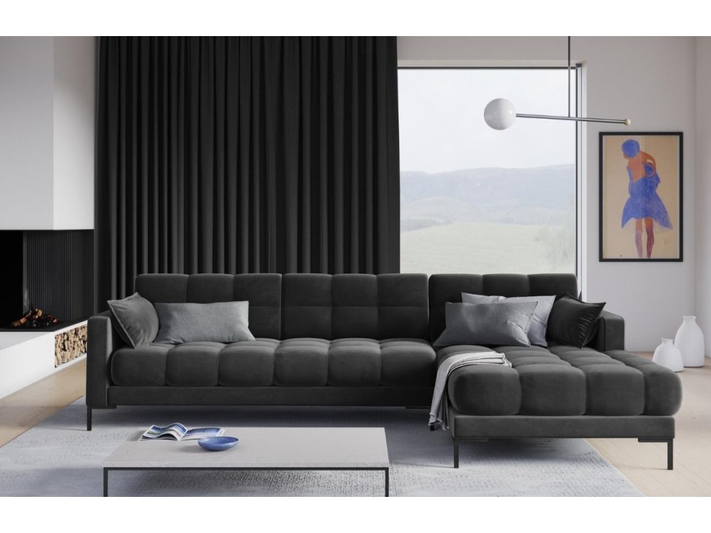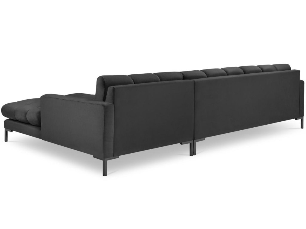 Sötétszürke bársony sarokkanapé MICADONI MAMAIA 293 cm, jobb
