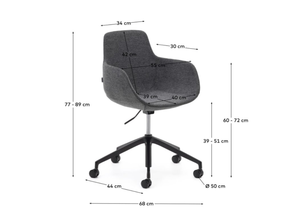 Sötétszürke kárpitozott forgó konferenciaszék Kave Home Tissiana