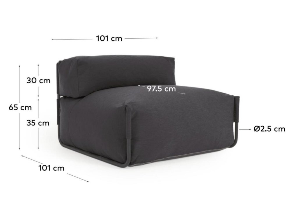 Sötétszürke szövet kerti modul háttámlával Kave Home Négyzet 101 x 101 cm
