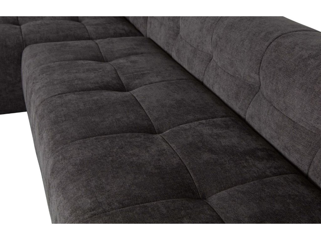 A Gorda sarokkanapé kompakt kialakításának köszönhetően maximális kényelmet nyújt. Sötétszürke kárpitozása kiváló minőségű zseníliaszövetből készült, amely a bársony puhaságával és a vászon szilárdságával rendelkezik. A szövet 45.000 martindale érték kel rendelkezik, és intenzív használatra alkalmas. A kanapé 3 cm magas műanyag talapzaton áll. Finom steppelésének köszönhetően bolyhosnak tűnik, és első pillantásra pihenésre és kikapcsolódásra invitál. Valódi és homokbarna színben is kapható.