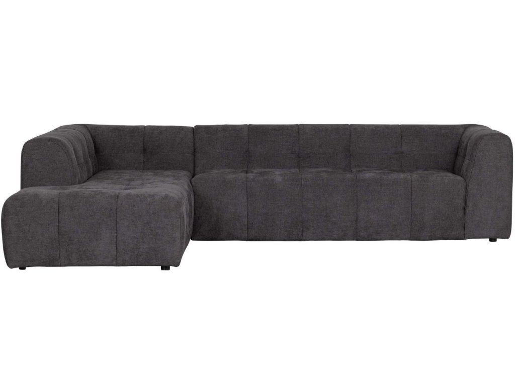Sötétszürke szövet sarokkanapé Gorda 298 cm, bal