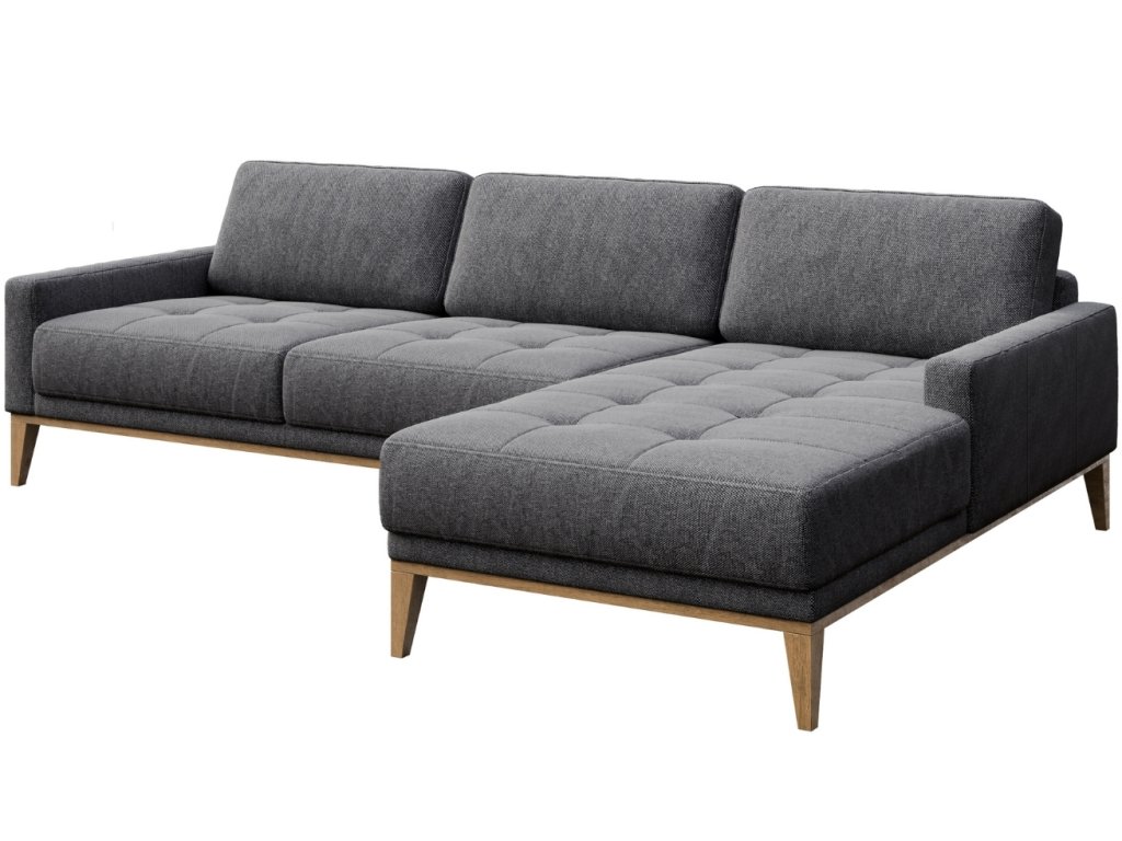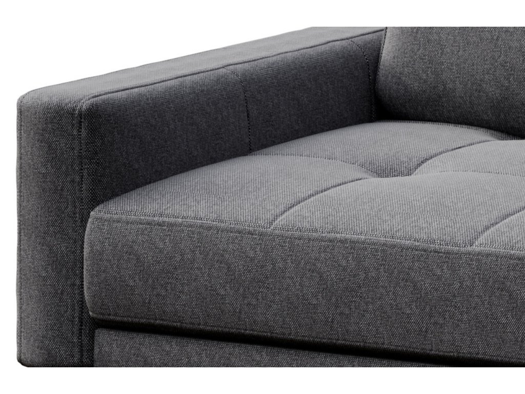 A MESONICA Musso Tufted dizájner sarokkanapé lenyűgöző megjelenésének köszönhetően kihagyhatatlan része lesz otthonának. A világos színű, masszív bükkfa alapot tökéletesen kiegészíti a kiváló minőségű szövetből készült sötétszürke kárpit, amely esztétikus megjelenést és átlagon felüli tartósságot kölcsönöz a kanapénak.