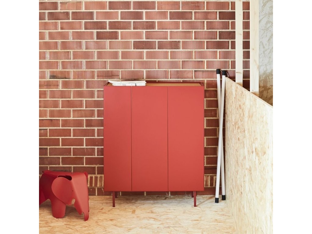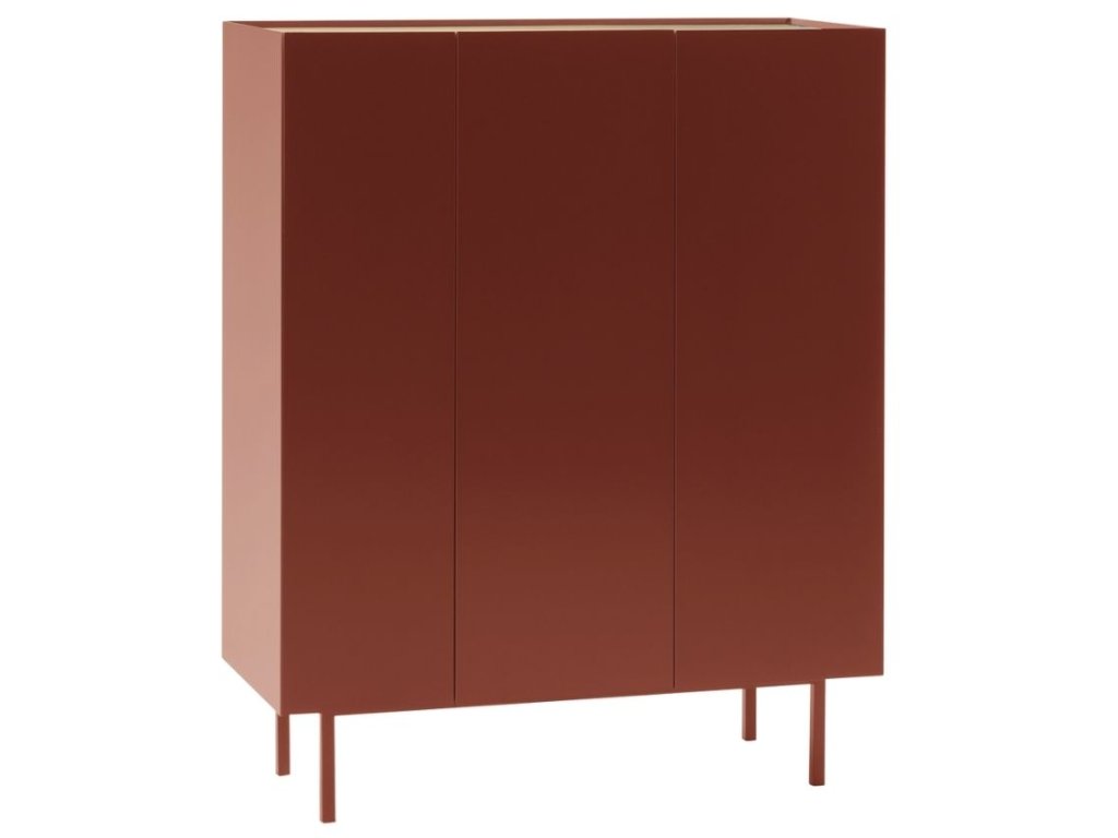 A Teulat Arista komód stílusos dekorációja lesz bármely modern nappali- vagy hálószobabelsőnek. A domináns sötétvörös szín kiemeli ennek a komódnak a minimalista kialakítását, amelyet a természetes árnyalatú tölgyfafurnérral borított teteje kontrasztosít. A tárolóhely gyakorlatilag polcokra van osztva, ami megkönnyíti a leltár rendszerezését. Teulat Az Arista speciális boros rekeszekkel is rendelkezik, a fiókos szekrény pedig boros szekrénykéntis szolgálhat. A komód modern stílusát a vékony, lakkozott fém talapzat hangsúlyozza, amely a komód többi részéhez illeszkedik.