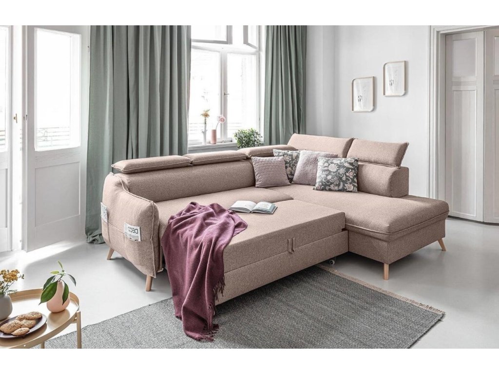 A Sweet Harmony sarokkanapé a Miuform márkától a tökéletes elegancia és praktikum egyensúlyának szinonimája. A finom vonalak, a részletek és a divatos színek, amelyek bármilyen modern vagy skandináv stílusú enteriőrbe illeszkednek, felkeltik a figyelmet, és időtálló stílust, kényelmet és meghitt légkört kölcsönöznek otthonának. ZAz ívelt háttámla, amely kiválóan támasztja a hát alsó részét, és a párnázott fejtámlák állítható szöggel a kanapé ergonomikus tulajdonságai, amelyek garantálják a kívánt kényelmet. Szükség esetén ez a kanapé egyszerűen kényelmes ággyá alakítható 2 fő részére. Hagyja, hogy elcsábítsa a Sweet Harmony által nyújtott magas komfort, és emelje belső terét egy teljesen új szintre.