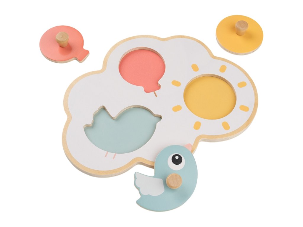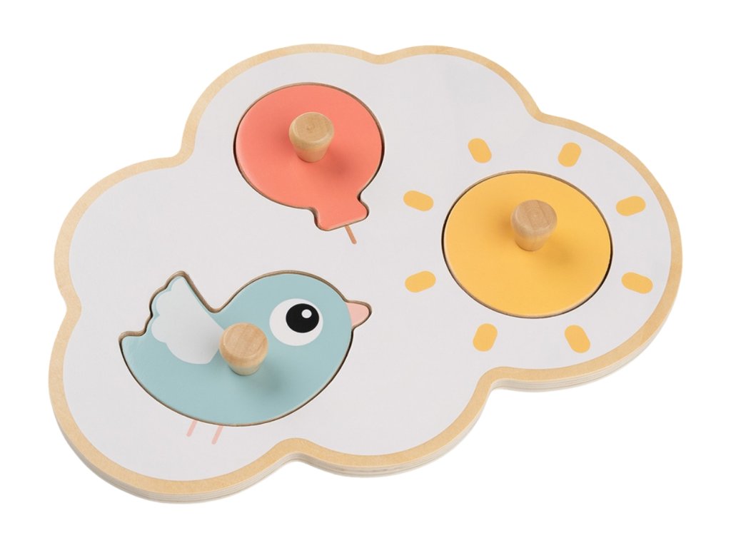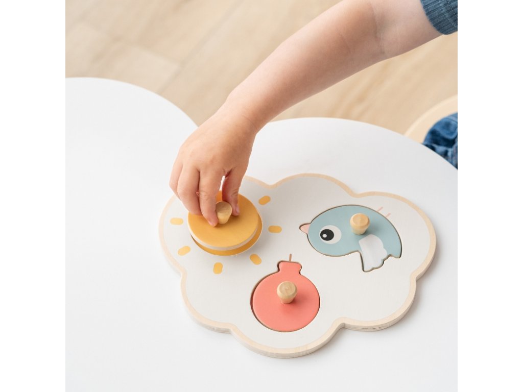 A Done by Deer által készített fehér felhő Happy clouds között egy aranyos Birdee madár, piros léggömb és sárga nap, amellyel gyermeke jól fog szórakozni. A rejtvények ideálisak a finommotoros készségek gyakorlására, és segítik a gyermekek logikus gondolkodásának fejlődését. Minden darab más színű és formájú, hogy megragadja a kicsik figyelmét. Mindegyiknek fából készült fogantyúja is van, így még a legkisebb gyermekkéz is könnyen megfoghatja.