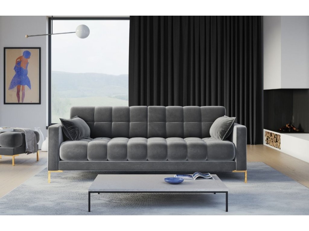 Szürke bársony négyszemélyes kanapé MICADONI MAMAIA 217 cm arany alappal