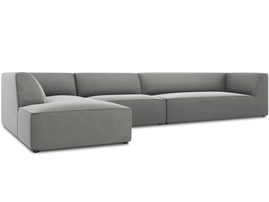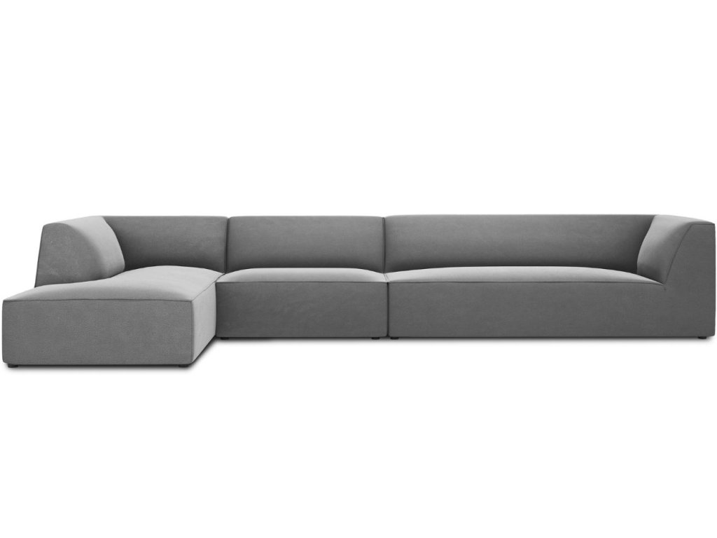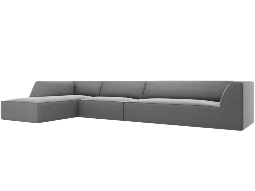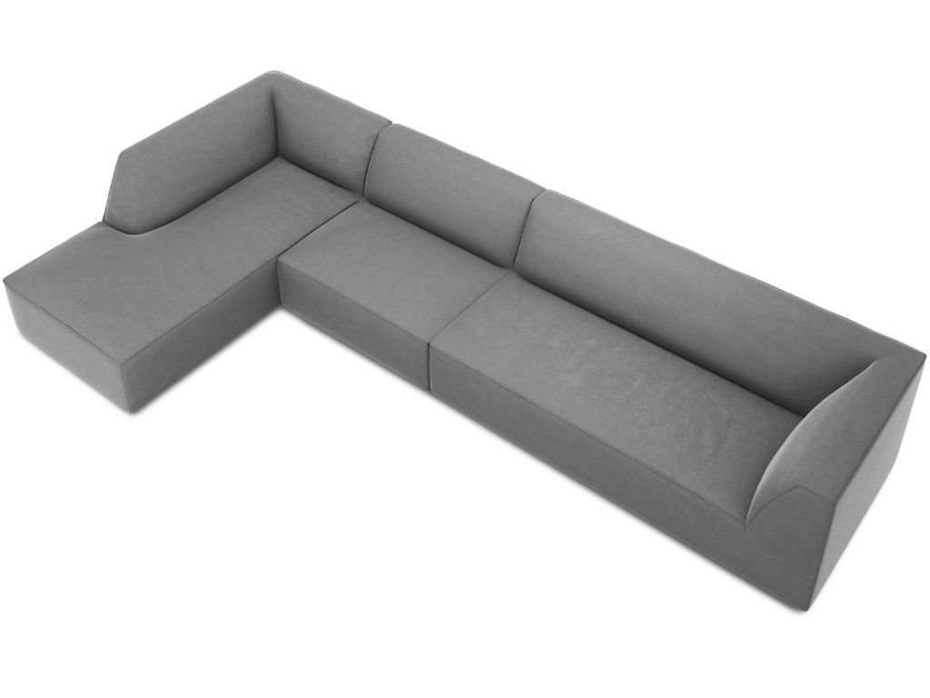 Szürke bársony sarokkanapé MICADONI Ruby 366 cm, bal