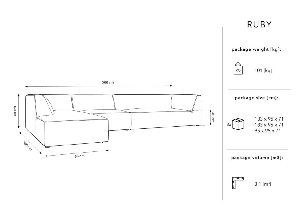 Ruby sarokkanapé a cégtől Micadoni kellemes kiegészítője lesz nappalijának vagy társalgójának. A kellemes, enyhén csillogó bársony kárpit olyan védelmet tartalmaz, amely lassítja a folyadékok felszívódását - a folyadék az anyag felületén gyűlik össze anélkül, hogy mélyen behatolna a szálakba. Ez megkönnyíti a kiömlött kávé vagy tea másodpercek alatt történő eltávolítását egy nedvszívó ruhával vagy papírtörlővel. Ezenkívül a szövet átment a cigarettateszten, ahol a kárpitok füst- és gyulladásállóak. A különböző modulok és kanapéméretek kombinálásával különböző ülőhely-konfigurációkat hozhat létre, és olyan kényelmes ülőhelyet kaphat, amilyet csak szeretne. Javasoljuk, hogy a Ruby kanapét párosítsa egy egyszerű dohányzóasztallal, amelyre gyertyákat, dekorációkat vagy harapnivalókat helyezhet el, hogy egyszerű, mégis kifinomult skandináv nappali garnitúrát hozzon létre.
