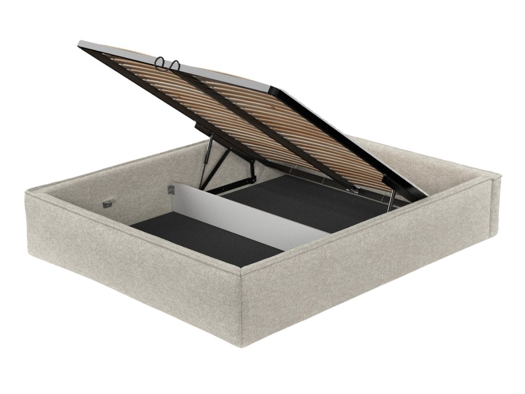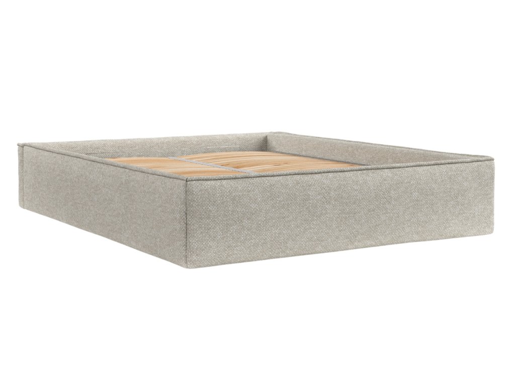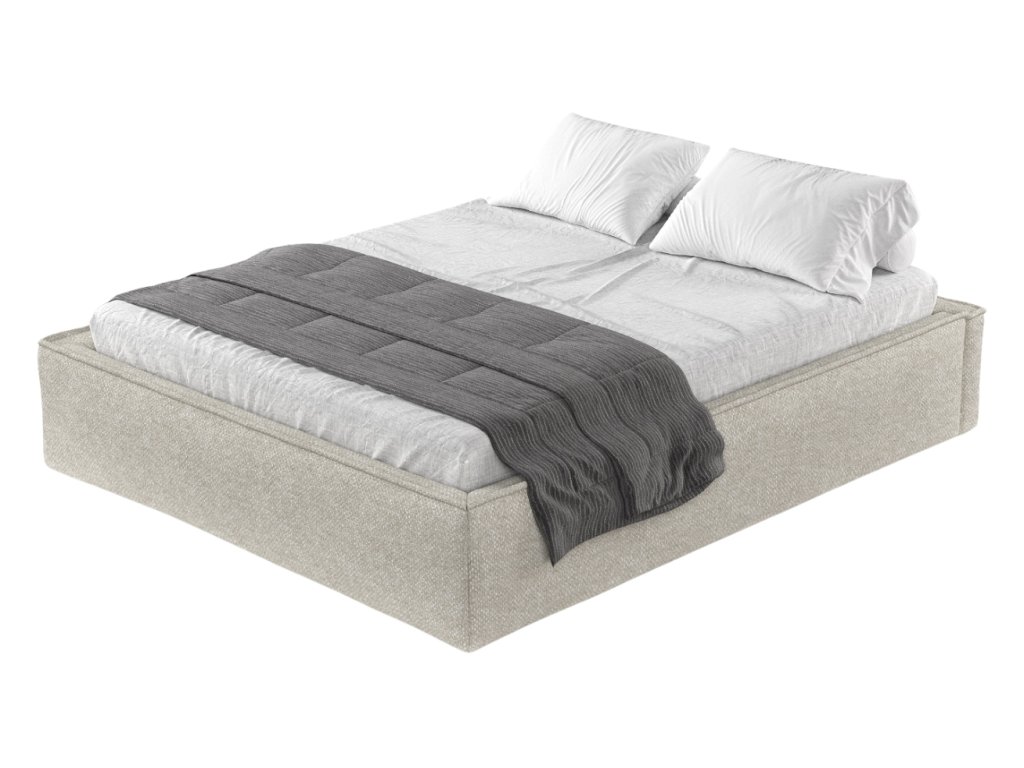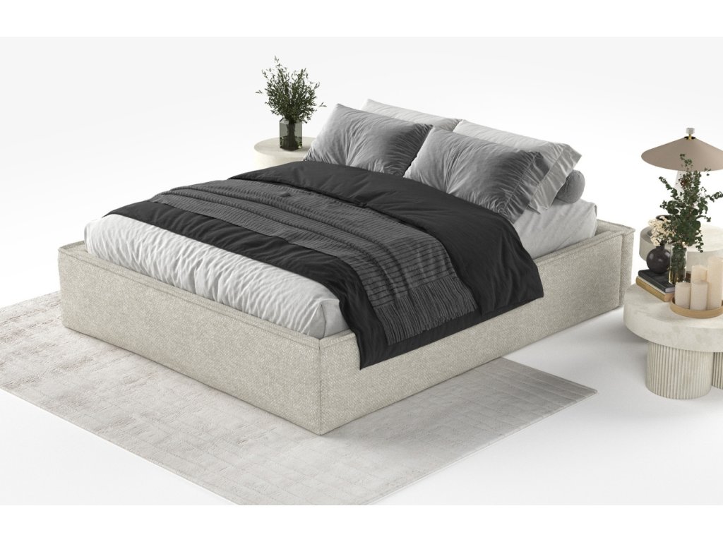 Szürke-bézs kárpitozott ALVAR L kétszemélyes ágy 200 x 200 cm-es ágyneműtartóval