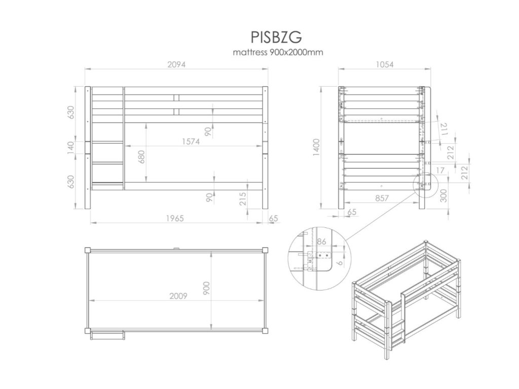 A Vipack Pino emeletes ágy szürke fenyőfából készült. Fehér és natúr színben is kapható. Nagyszerű megoldás a két utóddal rendelkező háztartások számára. A legfelső emeletes ágyra háromlépcsős létrán lehet feljutni, alvófelülete pedig korlátokkal van keretezve, így nem kell aggódnia gyermeke biztonságos alvása miatt. A létra pozícióját kiválaszthatja - lehet a jobb vagy a bal oldalon.