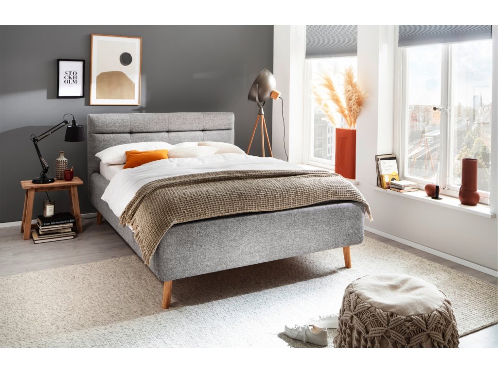 Szürke kétszemélyes ágy Meise Möbel Lotte 180 x 200 cm ágyneműtartóval