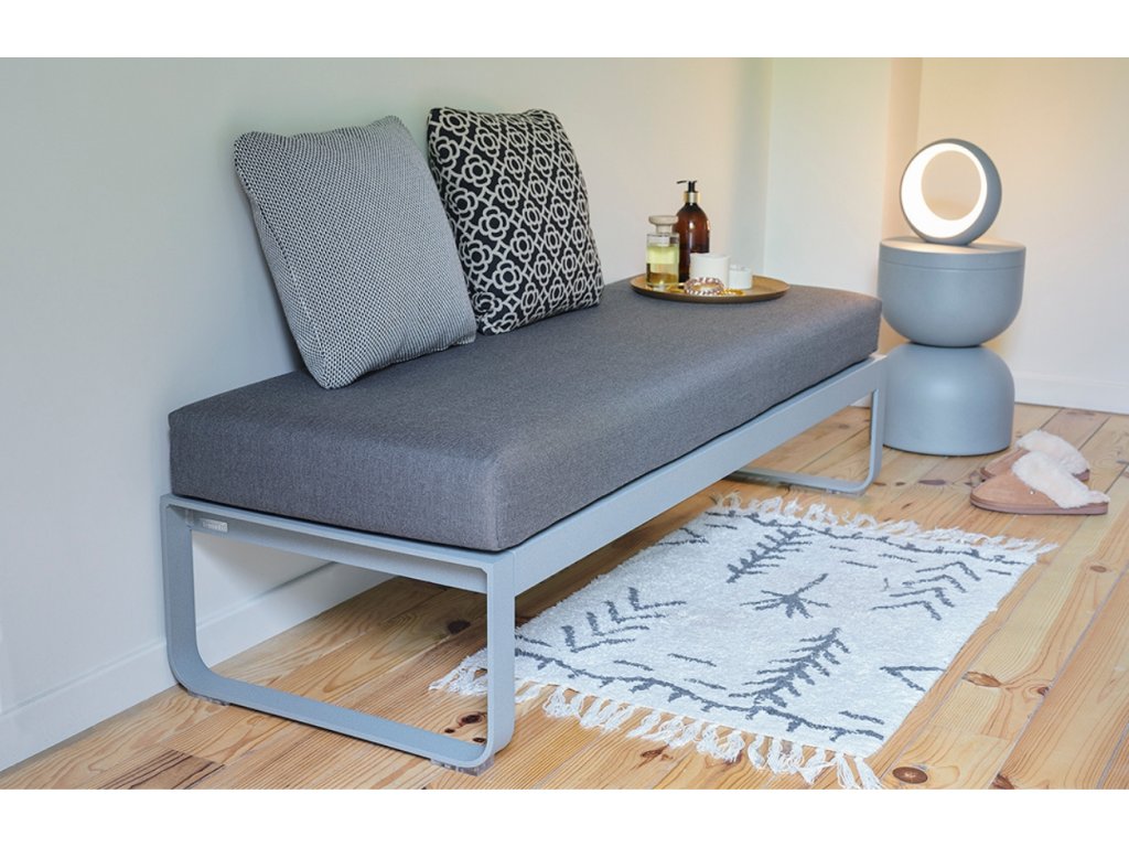 Az időtálló, elegáns, stílusos Bellevie pad nemcsak a kültéri ülőalkalmatosságok, hanem a belső ter ek számára is remek választás lesz. A kellemes Sunbrella szövetkárpitozás garantálja a tartósságot, mind a vízzel, mind az UV-sugarakkal szemben. Ezeknek a tulajdonságoknak köszönhetően nem kell aggódnia a rossz időjárás miatt, és a színtartóság miatt sem kell aggódnia. A légies alumínium talp egy kis személyiséget kölcsönöz a padnak, és teljessé teszi a letisztult dizájn megjelenését. A Bellevie pad a Bellevie termékcsalád más darabjai mellett párnákkal együtt mutat a legjobban. Egészítse ki álmai kerti együttesét.