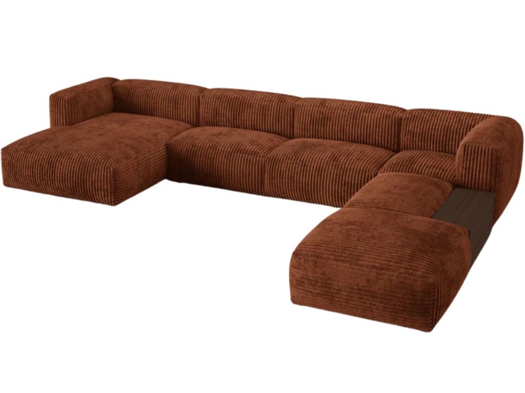 Terrakotta vörös bársony sarokülőgarnitúra Martina 406 cm, jobb oldali