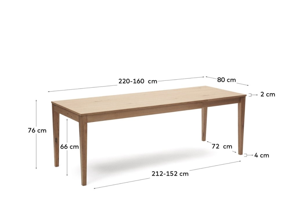 Tölgy összecsukható étkezőasztal Kave Home Yain 160/220 x 80 cm