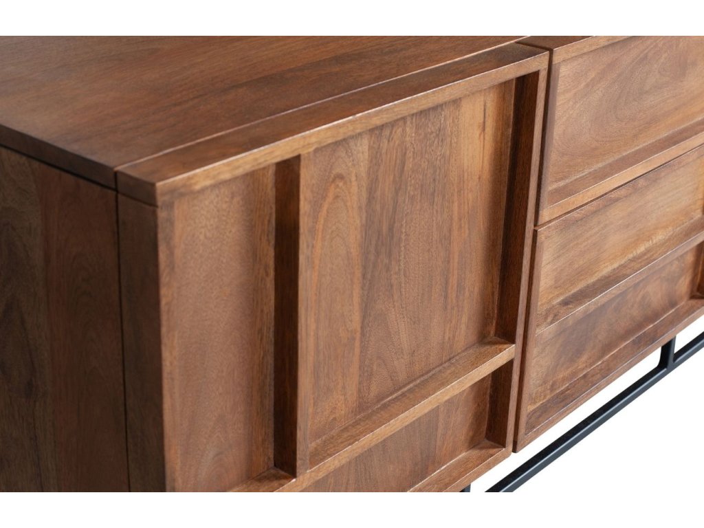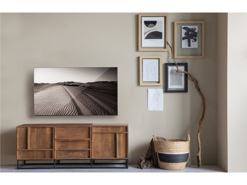 A stílusos Woods TV-asztal már első pillantásra lenyűgözi rendkívüli formatervezésével . A tömör mangófa test és a fekete lakkozott fém talp vonzó kombinációt alkot, amely hangulatos hangulatot varázsol a belső térbe. A Woods asztal 4 rekesszel és 3 fiókkal rendelkezik, így rengeteg tárolóhelyet biztosít a készleteknek. A Woods TV-asztal nemcsak rusztikus enteriőrökbe illik tökéletesen. Finomítsa belső terét a teljes Woods kollekcióval.
