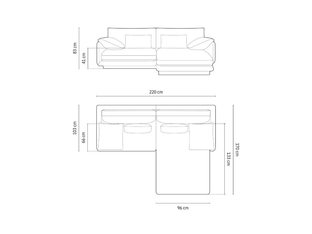 Torino 220 cm-es bársony sarokkanapé, jobb oldali