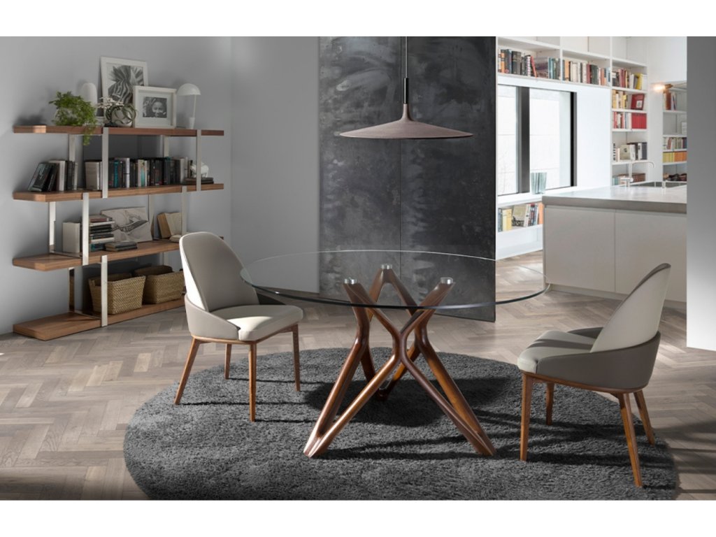 Ez a kerek étkezőasztal a Angel Cerdá cégtől edzett üveglappal és eredeti geometrikus kialakítással tömör kőrisfából készült alappal rendelkezik. diószínben. Elegáns megjelenése és modern stílusa uralni fogja az étkezőjét, és kifinomult hangulatot kölcsönöz minden térnek. Az asztalt a kényelmet és a funkcionalitást szem előtt tartva tervezték, így ideális választás a mindennapi étkezéshez. Tökéletesen illeszkedik a különböző belsőépítészeti stílusokhoz, és hangulatos légkört teremt. Három különböző méret közül választhat, hogy nagyobb számú vendég kényelmesen elférjen, amit családi vacsorák és társasági összejövetelek alkalmával értékelni fog.