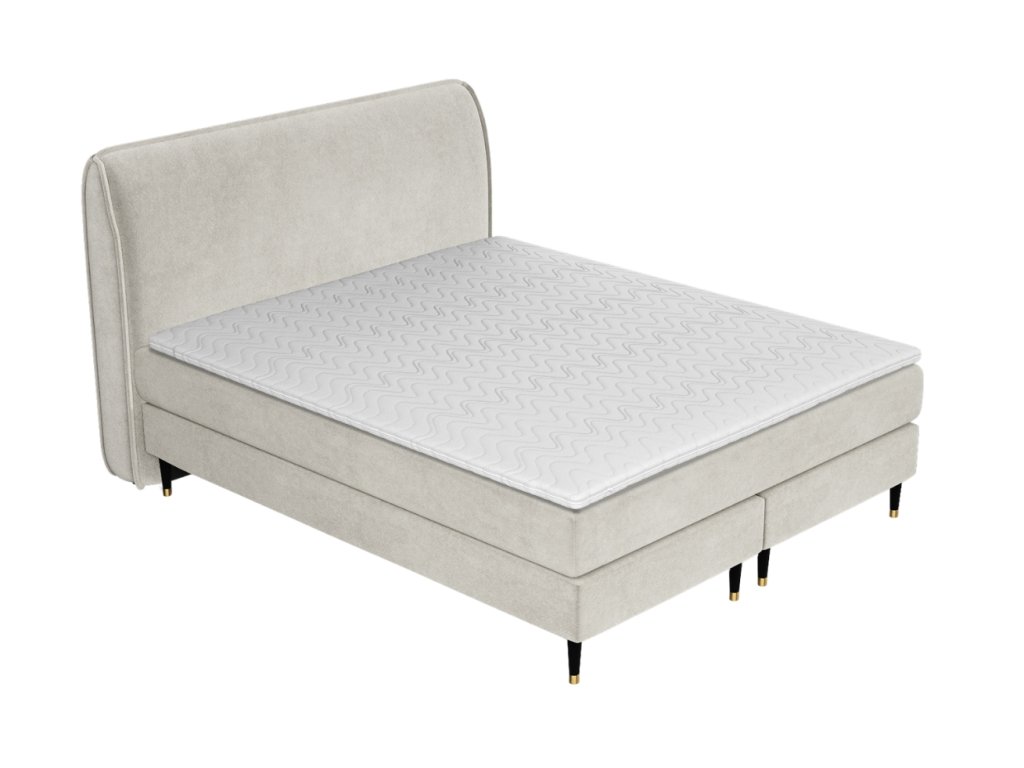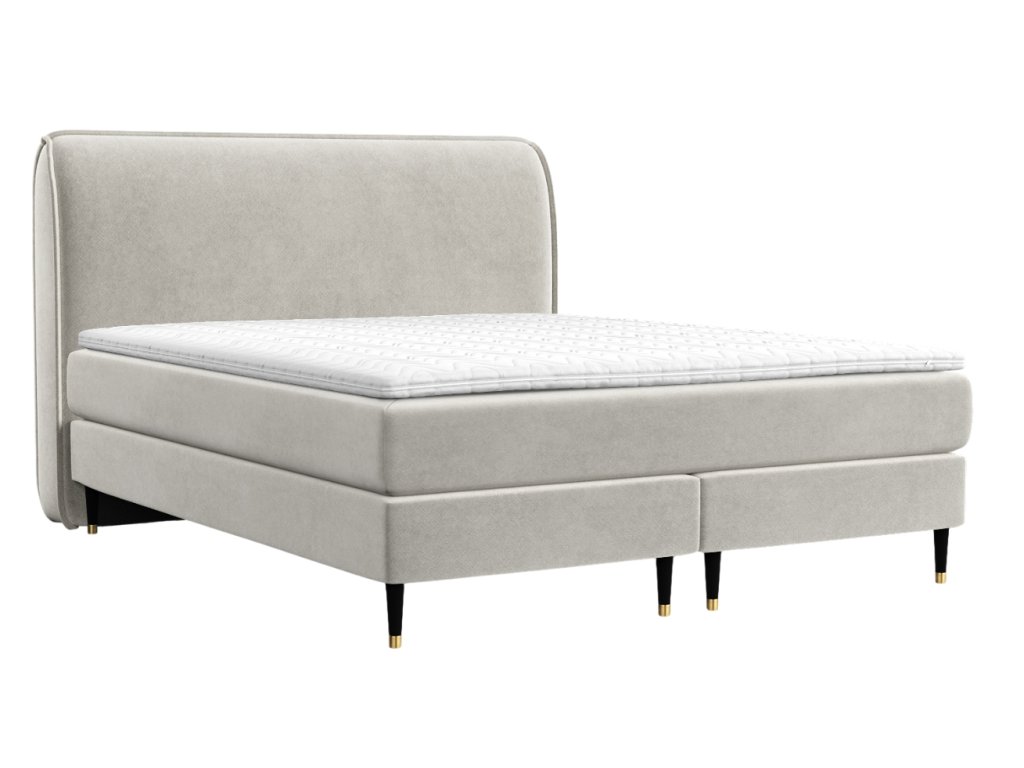 Világos bézs bársony boxspring ágy OFFO 200 x 200 cm