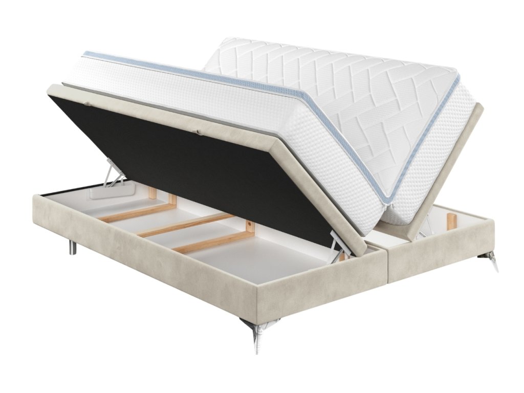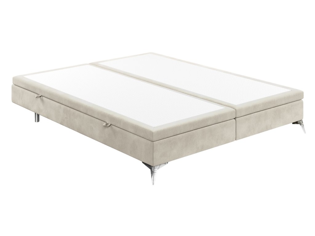 A FIR kétszemélyes ágy minimalista dizájnt és funkcionalitást hoz a hálószobájába. A finom, enyhén fényes bársonyos szövet és a Cleanaboo bevonat minimalizálja a folyadékok felszívódását, ami megkönnyíti a karbantartását. A praktikus, oldalról nyitható tárolódobozok elegendő helyet biztosítanak az ágynemű vagy a szezonális holmik tárolására.Az alap csúszásgátló rétege biztosítja, hogy a matrac mindig a helyén maradjon.Az ágy króm lábazata egy csipetnyi modern eleganciát kölcsönöz a teljes megjelenésnek. A FIR nagyszerű választás azok számára, akik szeretik a tiszta vonalakat és a praktikus stílust, amely segít otthonosabbá tenni otthonát.