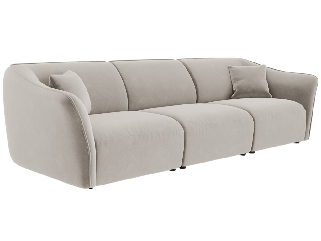A Cosmopolitan Design márka ötüléses Tokyo kanapéja egy jellegzetes bútordarab bútor, amely ötvözi az egyszerűséget és az eleganciát. Világos bézs árnyalatú, fényes bársony kárpitozása rendkívül puha és kellemes tapintású. A szövet rendkívül ellenálló a kopással és a folyadékfelszívódással szemben, így hosszú távú használatot garantál kopás jelei nélkül. A Tokyo kanapé nyolc színben és többféle változatban kapható - háromszemélyes kanapéként vagy sarokként, amelyek könnyen alkalmazkodnak a különböző belső terekhez és igényekhez.