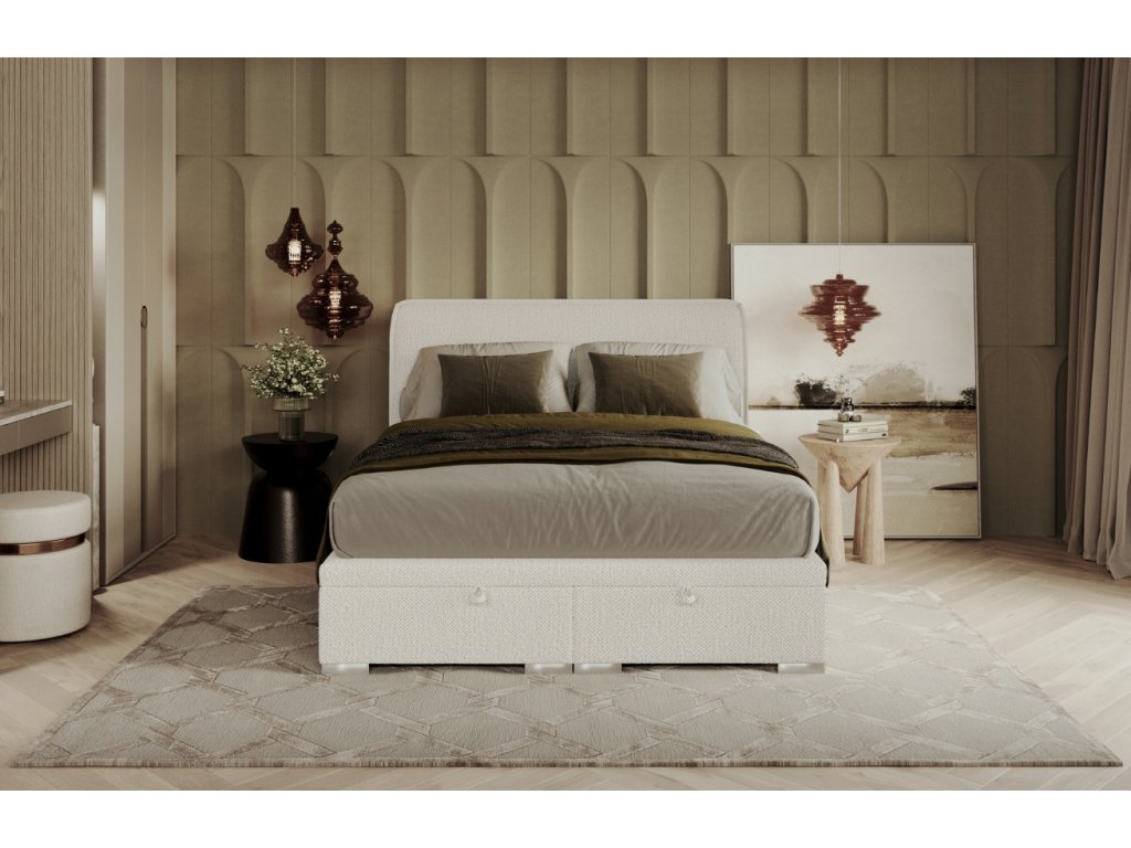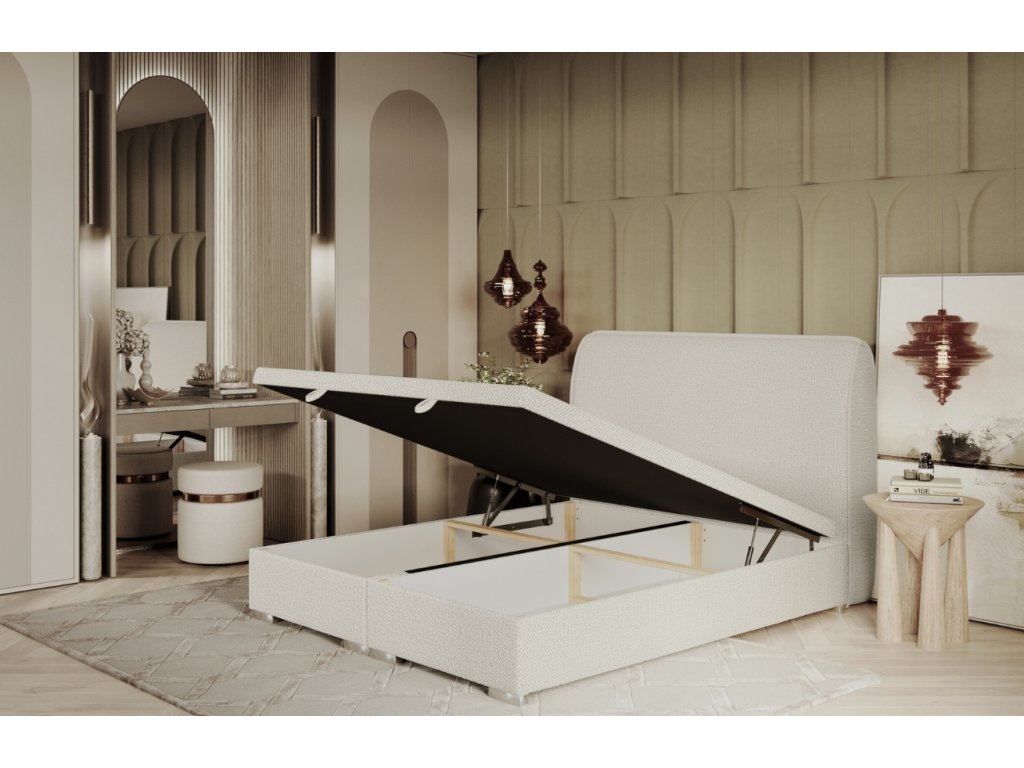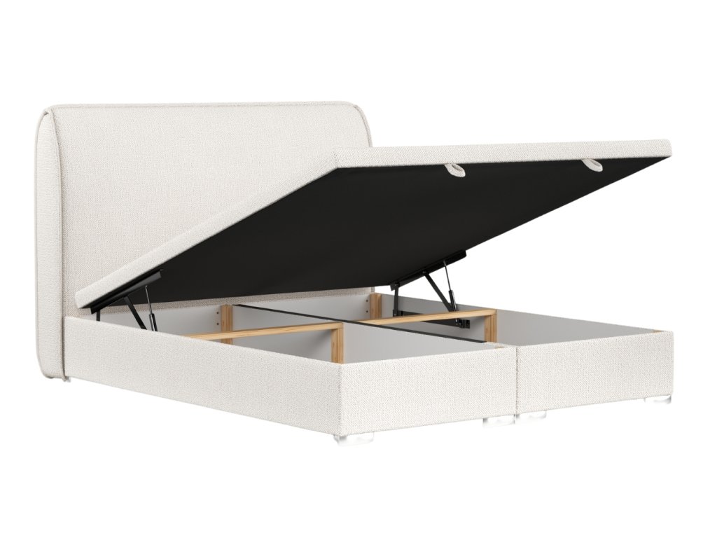 A NOHO ágy elegáns dizájnjával nyűgöz le, melyet finoman elkeskenyedő fejtámlája tesz teljessé, modern stílust kölcsönözve a hálószobának. A zsindelyszövete nemcsak gyönyörű, hanem kellemes tapintású és rendkívül kopásálló is, ami hosszú élettartamot biztosít. A beépített, elöl nyíló, két konténeres tárolóhely okos és praktikus megoldást kínál ágyneműk vagy szezonális holmik tárolására. A talp felső részén található csúszásgátló szövet szilárdan a helyén tartja a matracot.