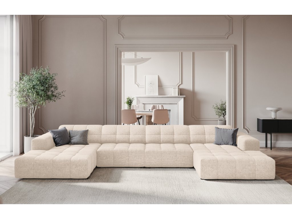Világos bézs kárpitozott sarokkanapé "U" Cosmopolitan Design Chicago 364 cm