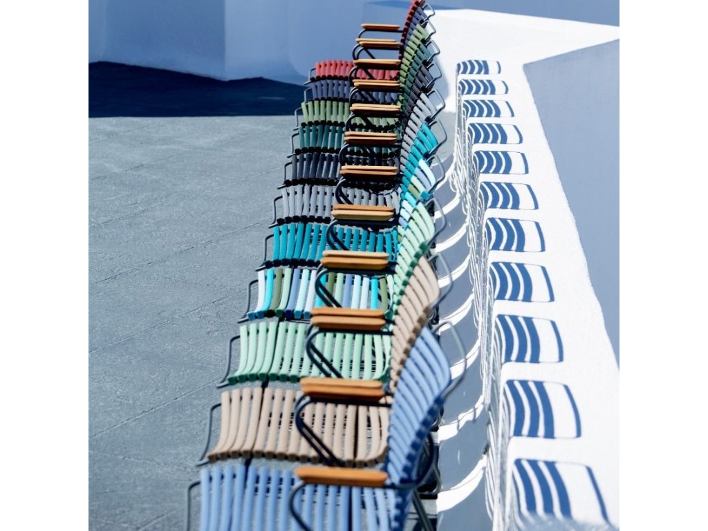 A HOUE Click kerti szék modern megjelenésével nyűgöz le. A Click szék a modern északi stílust hangsúlyozza, ami már első pillantásra magával ragadóvá teszi. A műanyag lécekből készült kényelmes ülés, a fém alap és a praktikus bambusz kartámaszok együttesen egy egyedi bútordarabot alkotnak, amely tetszeni fog Önnek. A modern design és a jellegzetes kifejezésmód kiemeli a szék általános lényegét. A szék alkalmas kültéri környezetbe. Sokféle színben és kivitelben kapható - melyik fogja díszíteni az Ön kertjét?