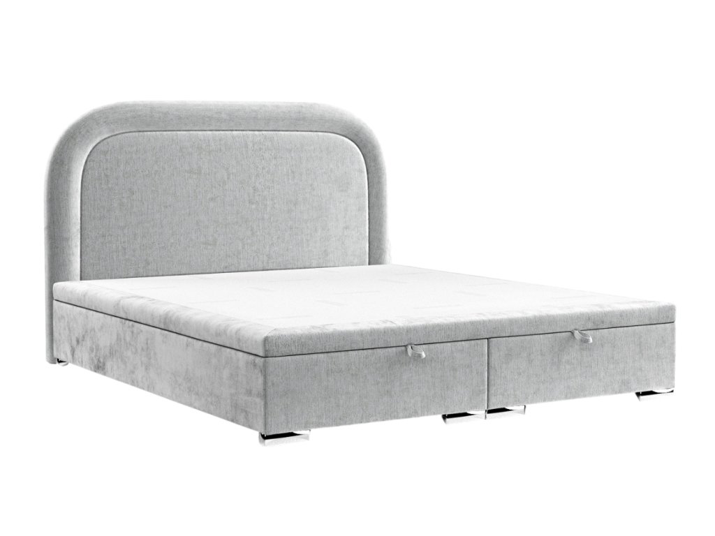 Világosszürke kárpitozott UFFIZI kétszemélyes ágy 200 x 200 cm-es tárolóval